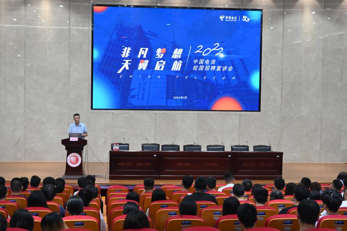 9月23日上午,中国电信股份有限公司上海分公司2022届宣讲招聘会在临港校区学术楼117报告厅举行,中国电信股份有限公司上海分公司人力资源中心主任骆巍出席并进行宣讲。本次宣讲招聘会由新葡亰88805ntt筹办,新葡亰88805ntt党委副书记周冬梅主持会议,我校近150名2022届毕业生参会。