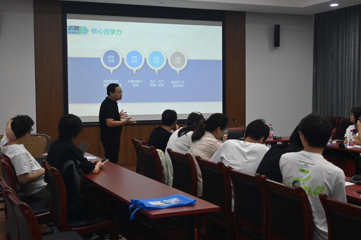 随后,在富满微电子集团股份有限公司任职的2020届校友邵长港向大家介绍了公司的射频测试部,向大家介绍了射频前端技术的发展前景以及岗位人才的需求,期待新鲜血液的加入,大家一起在工作中收获快乐、收获成长!
