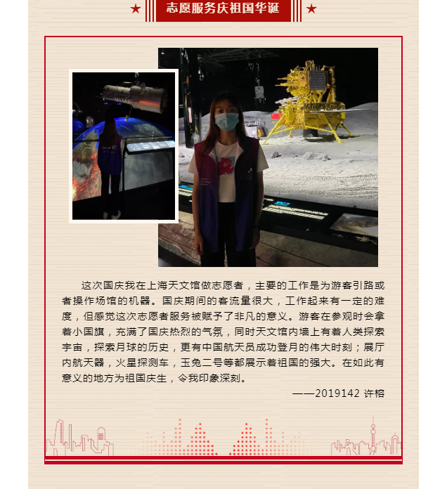 2021级新生薛杰感慨道:“十一假期我选择了留在学校,但是我并不感到孤单,因为感受到了学院对同学们的无限关心与照顾。为了丰富我们留校学生的假期生活,学院还组织了一系列活动,同学们都受到了爱国主义教育和洗礼,作为刚入学的大一新生,我要在未来四年努力学习本领,为国家的发展贡献自己的一份力量!”