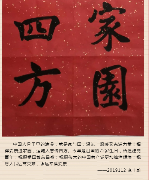 金秋十月,喜迎国庆;盛世华诞,举国同庆。中华人民共和国成立72周年之际,学院还举办了“我为祖国庆生”作品征集活动,与全院师生共同祝祖国母亲生日快乐!同学们踊跃参与,通过“志愿服务庆祖国华诞、书法作品庆祖国华诞、旭日东升庆祖国华诞”等系列作品的形式进行开展,充分展现了电信学子对祖国的敬爱之情。青春和祖国一起闪光,光荣与梦想共同创造,值此祖国72周年华诞之际,把最美好的祝福送给祖国,希望祖国的明天越来越好!