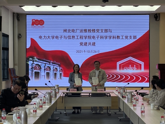 为了更好加强基层党建工作,以党建工作凝聚人心,促进各项业务工作发展。双方党支部进行结对共建,签署了共建协议书。随后,双方党支部书记介绍了党支部目前的建设情况。闸北电厂运维检修党支部介绍了目前他们的业务转型情况,围绕电力检修、物联网建设开展了介绍。电子科学学科教工党支部围绕学科建设、人才培养、党支部建设等开展了介绍。双方均表示将以深入推进党建、业务等工作,以结对共建为契机,整合双方的党建资源,形成互学互鉴、互帮互助的共建格局,通过党建引领,进一步推动双融合、双促进,推进双方专业上合作共建,取得相应成果。