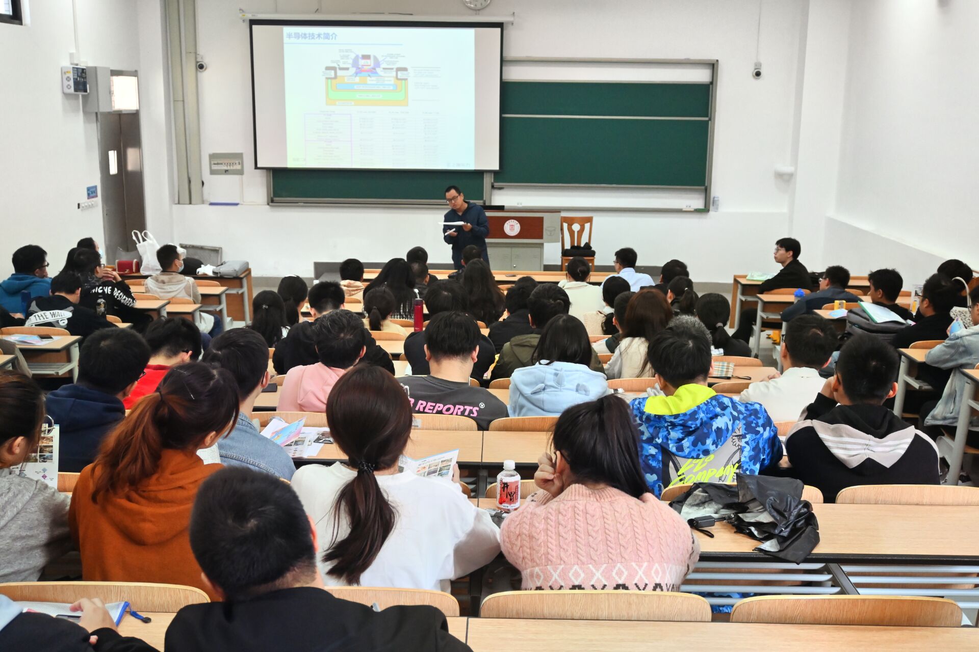 10月29日下午,上海华力微电子有限公司(以下简称“上海华力”)2022届秋季校园招聘宣讲会在临港校区三教101教室成功举办。上海华力工程部科长赖朝荣、人力资源部招聘科专员施依依等组成的9人招聘团队来我校宣讲招聘,新葡亰88805ntt承办此次招聘会,我校各二级学院的100余位本科生、硕士研究生参加。