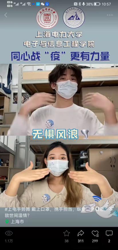 视频号发布了“师生共抗疫”的暖心视频。学生们“同心抗疫手势舞”的精彩演绎,营造出了轻松活泼、积极向上的氛围,缓解了同学们面对疫情的紧张情绪,并且代表我校入选团市委“团在校园 上海学联”公众号推送;“云端健身房”视频带领足不出寝的同学们在寝室运动起来,一同云端健身,共建健康体魄;在“期待摘下口罩相见”的慢动作视频中,同学们坚定眼神下的温暖笑容,蕴藏着我们每个人对疫情尽早结束的美好期盼,也鼓励同学们保持积极心态,遵守防疫规定,坚定坚守的信念;在“男/女生寝室趣问答”视频中,同学们轮流回答有趣的网络题目,笑声连连、趣事不断,展现出准封闭期间电信学子乐观向上、积极响应号召的青年风采;“百变大白辅导员”更是让同学们感受到来自老师们深沉的守护、关爱和奉献,只要师生同心,我们一定能够早日迎来春暖花开!同时视频号也及时发布了有关考研调剂问题、相关赛事等活动的信息。