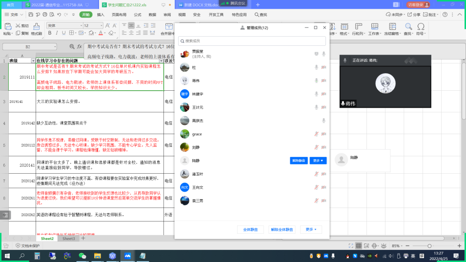 电子信息工程专业坚持每周日开会,重点讨论工程认证7个工作小组阶段任务,同时对线上教学注意事项、卓越班选拔等重点工作向专业教师进行解读。通信工程专业向教师们反馈了学生座谈会的学生意见,希望教师关注学生反应反馈,加强与学生的沟通交流,活跃线上课堂气氛。同时鼓励教师积极开展工程认证的课程建设工作。电子科学与技术专业在教研活动中讨论了期中教学检查中反馈问题级注意事项,部署了培养方案修订工作。光电信息科学与工程专业针对专业发展、毕业设计抽检及学生反馈意见召开了多场教研活动。