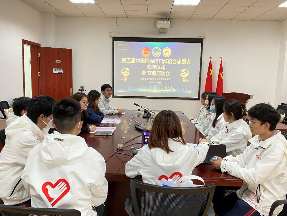 何西培代表学院党委对第五届进博会电信志愿者们的顺利回归表示热烈的欢迎,她表示,第五届进博会是在党的二十大胜利召开之后我国首个重量级国际展会,进博会不仅是展示中国青年形象的重要平台,更是志愿服务实践育人平台和思政教育第二课堂。虽然因为疫情防控原因不能到达现场看望大家,但学院一直关注着“小叶子”们在服务期间的动态,“小叶子”们用实际行动践行了“立德求知,创新求是”的院训精神和“奉献、有爱、互助、进步”的志愿服务精神。在志愿中学习,在学习中进步。“小叶子”们在国际舞台上展现着上电学子的青年风貌,不仅是为学校、为学院,更是为进博、为国家增光添彩。同时对志愿者们提出殷切期望,希望在未来“小叶子”们继续以矢志不渝的服务之心、兢兢业业的爱岗之行,接续传递志愿者精神,以更好的姿态,在实现中华民族伟大复兴进程中奋力前行!
