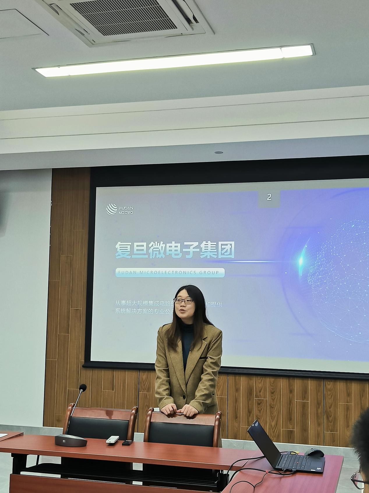 11月22日下午,上海复旦微电子集团股份有限公司(以下简称“复旦微电子”)2023届校园招聘宣讲会在我校临港校区学术楼305会议室举办,复旦微电子人力资源部吕沁沁,工程师袁翔,就职于复旦微电子的新葡亰88805ntt2021届毕业生刘琦,新葡亰88805ntt党委副书记周冬梅,毕业班辅导员王思绮出席会议,宣讲会采用线上线下相结合的方式展开,我校近80余名毕业生参加。