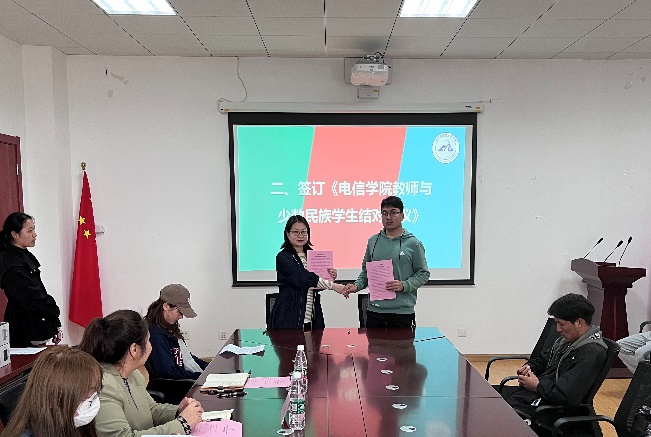 随后,周冬梅作为教师代表与2022111班的少数民族学生代表努尔艾力·图拉克签订了《新葡亰88805ntt教师与少数民族学生结对协议》。学院通过一对一结对的形式深入开展对少数民族学生的关心和关爱,在思想引领、学业指导、生活帮扶、身心健康等方面为学生提供各项服务和保障,培养学生的家国情怀,努力提升学生各方面的能力和素质。