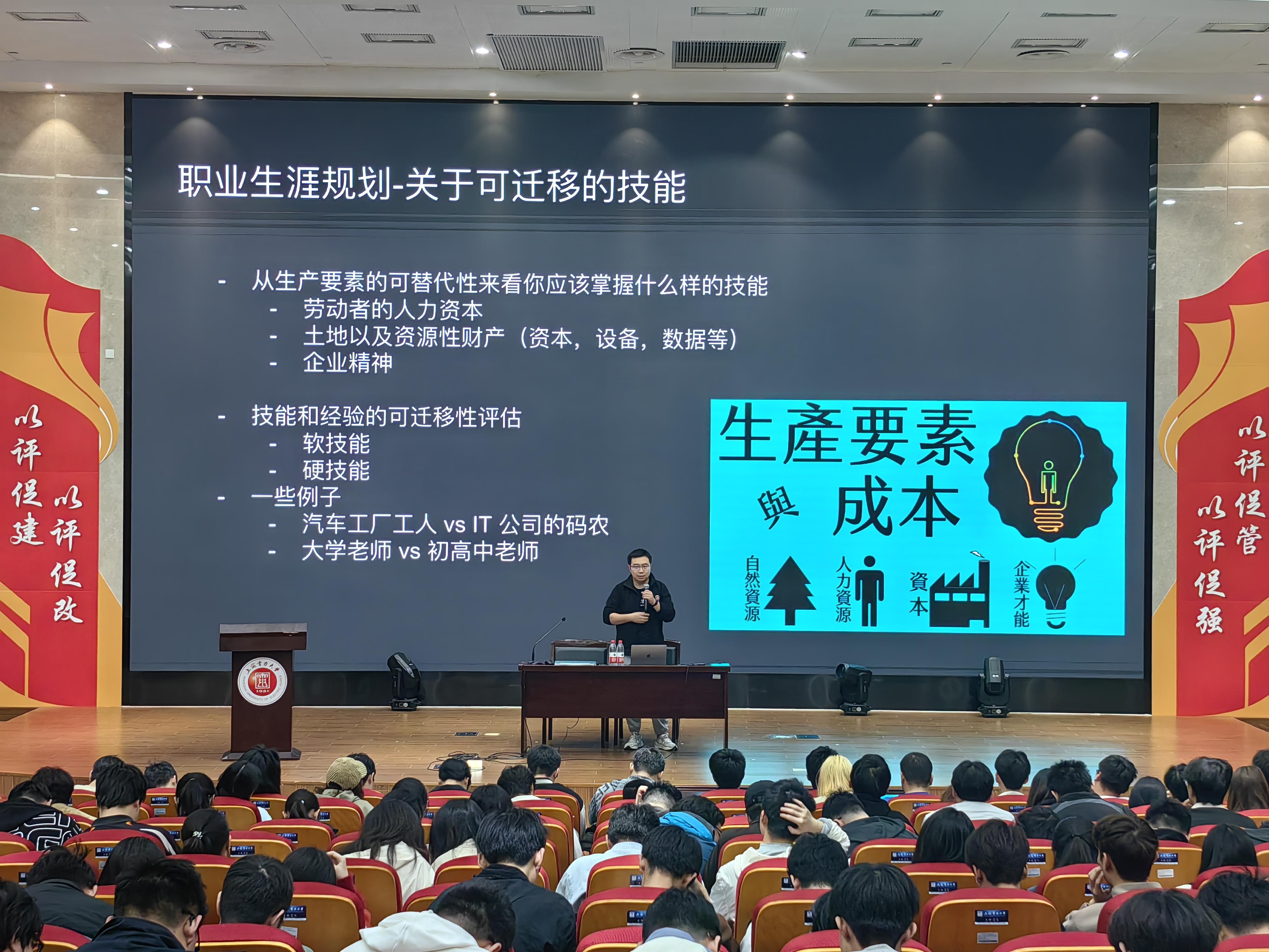 为帮助学生树立生涯规划意识,提升专业认知水平与职业探索能力,引导学生明确学业与职业生涯发展规划,4月26日,新葡亰88805ntt在学术楼117报告厅开展了《大学生就业与创业实务》课程讲座,讲座邀请到智普新思信息咨询有限公司产业基金技术顾问赵震林主讲,学院全体2021级学生参加。