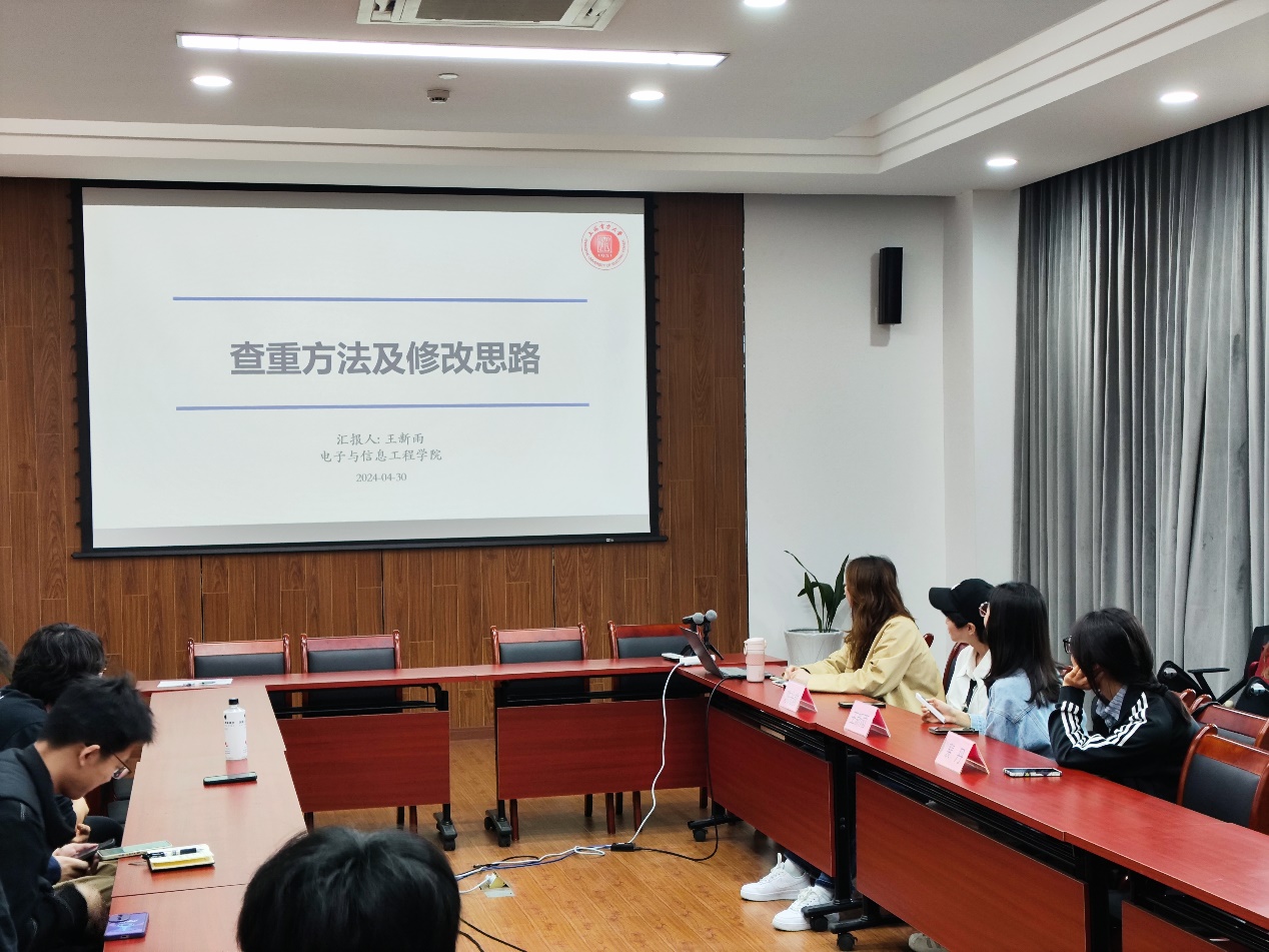 会上,陈光前围绕“论文撰写”方面,向在场学生介绍了一篇完整学术论文的组成框架,并结合自身学术研究经验,鼓励同学们制定合理的研究计划,持之以恒地完成每日既定计划。王新雨结合自身所知所用的学术平台,围绕论文查重方法及修改思路方面进行介绍,修正过分追求“零重复率”的错误思想,明晰引用与抄袭的区别,并强调了学术诚信的重要性。裴丹向同学们介绍了学术答辩时的注意要点,强调了学术答辩的严肃性与严谨性,并分享了答辩准备的相关技巧。