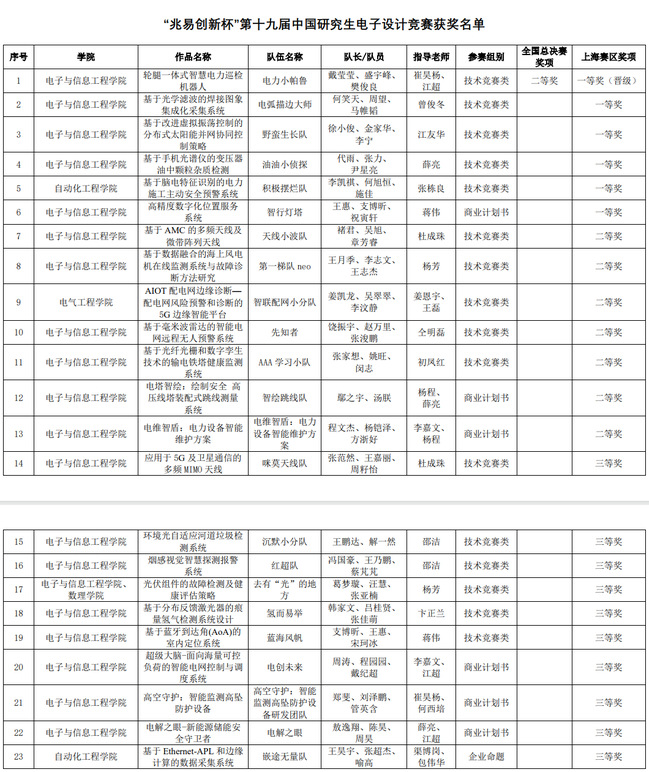 “研电赛”是一项全国高校及科研院所积极参与的主流赛事,也是我校历年较大规模组织和参与的重要赛事。在所有参赛队员的共同努力和指导老师的辛勤付出下,我校参赛团队以优异的成绩展现了上电研究生的风采。
