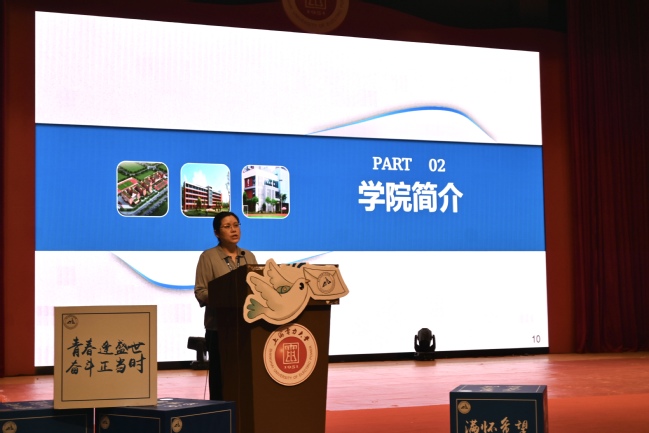 大会伊始,何西培代表全院师生对2024级全体新生的到来表示热烈欢迎。致辞中,她介绍了学院的发展历史与院系文化,希望新生牢记“立德求知、创新求是”的院训,树立“院兴我兴、院荣我荣”的集体荣誉感,珍惜来之不易的学习机会,以饱满的热情、昂扬的斗志投入到未来的学习和生活中去,读好书、结好友、成大业,通过学习和实践,不断培养自我人文素养和专业素养,树立正确的世界观、人生观和价值观,努力去实现自己的梦想,创造出属于自己的辉煌人生。